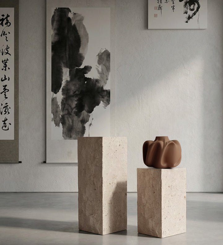 Now available in two sizes, the Podium in Limestone is inspired by the raw clarity of Brutalism and the ornamental language of façades, its carved reliefs capture and release the light, casting shifting shadows that move with the day. In this dialogue with time, Podium itself becomes a living artwork.