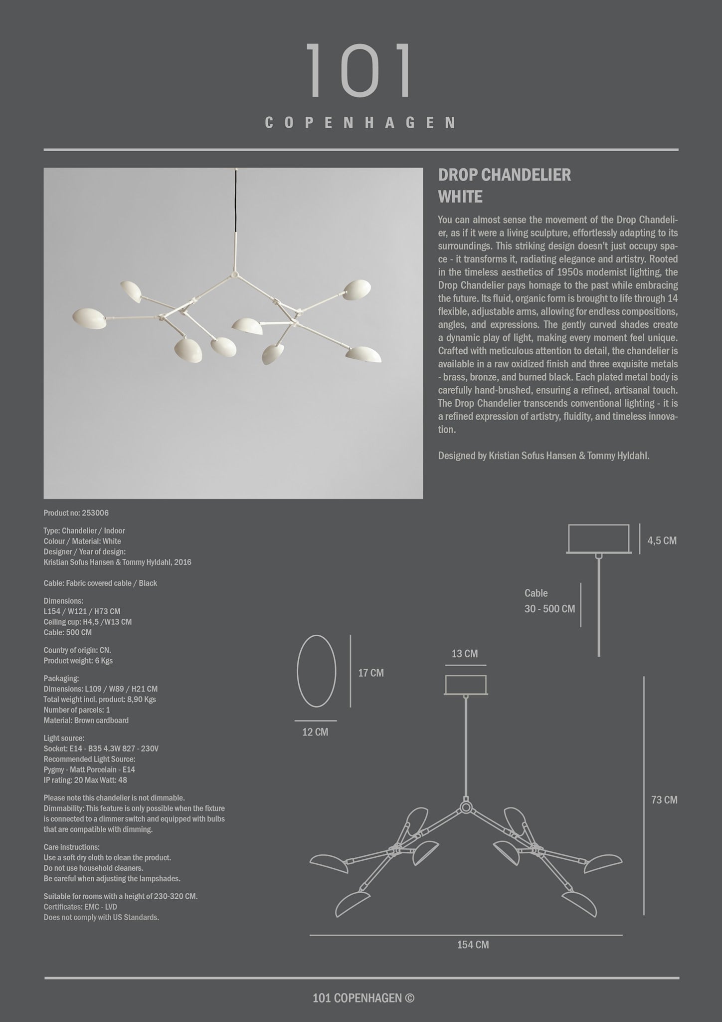 You can almost sense the movement of the Drop Chandelier, as if it were a living sculpture, effortlessly adapting to its surroundings. This striking design doesn’t just occupy space - it transforms it, radiating elegance and artistry. Rooted in the timeless aesthetics of 1950s modernist lighting, the Drop Chandelier pays homage to the past while embracing the future. Its fluid, organic form is brought to life through 14 flexible, adjustable arms, allowing for endless compositions, angles, and expressions. The gently curved shades create a dynamic play of light, making every moment feel unique. Crafted with meticulous attention to detail, the chandelier is available in a raw oxidized finish and three exquisite metals - brass, bronze, and burned black. Each plated metal body is carefully hand-brushed, ensuring a refined, artisanal touch. The Drop Chandelier transcends conventional lighting - it is a refined expression of artistry, fluidity, and timeless innovation.
