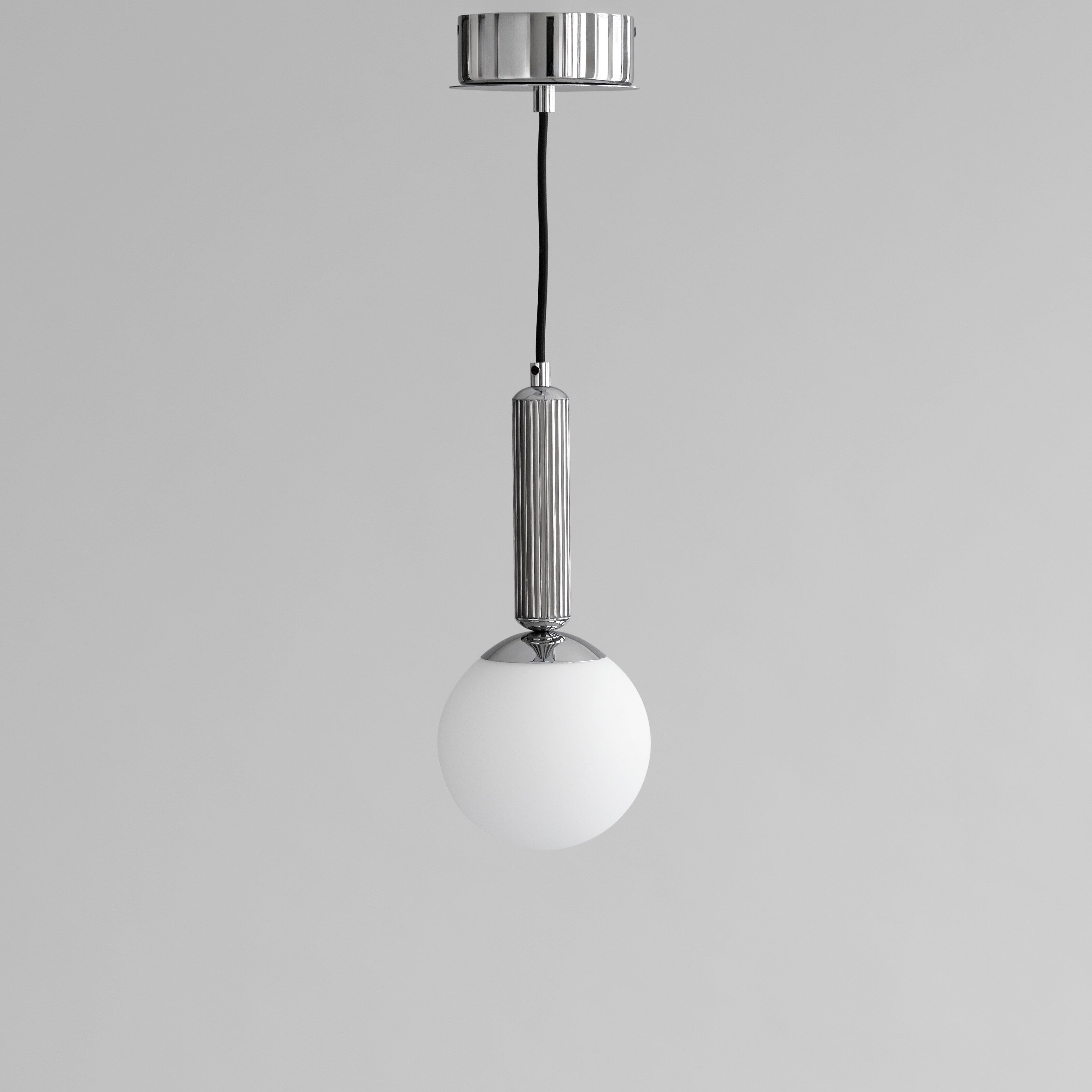 Always switch off and unplug the lamp before cleaning. Keep it away from excessive humidity or direct water contact. With simple, consistent care, the Chrome (Cr III) will preserve its liquid-metal brilliance, while the matte opal glass will maintain its soft, luminous glow ensuring the lamp remains refined and timeless for years to come.