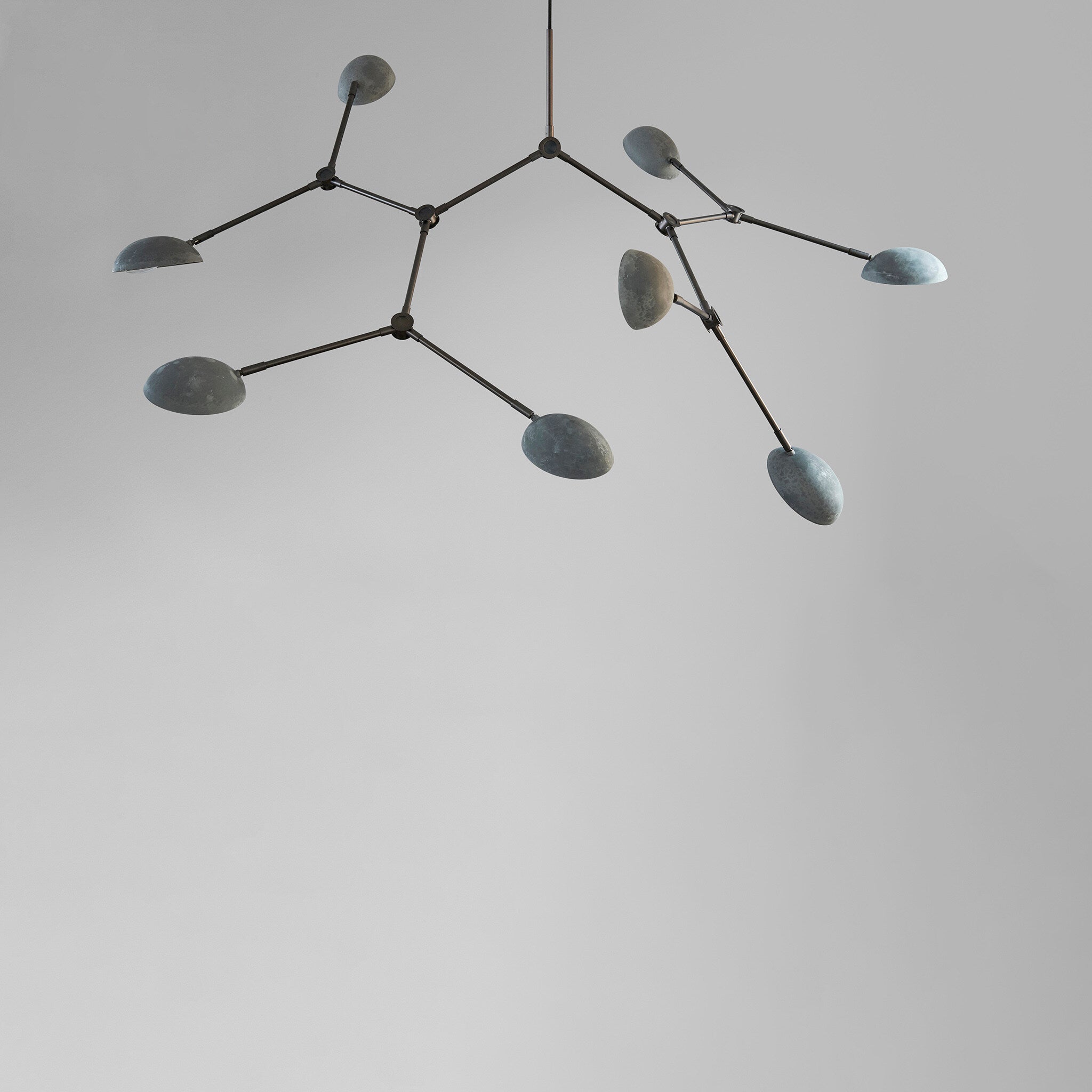 Its fluid, organic form is brought to life through 14 flexible, adjustable arms, allowing for endless compositions, angles, and expressions. The gently curved shades create a dynamic play of light, making every moment feel unique.