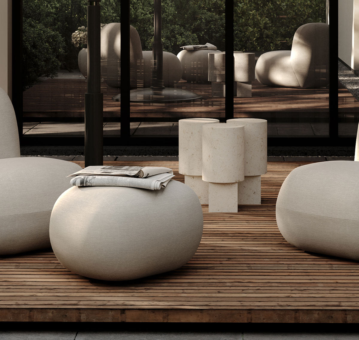 Designed as a versatile companion to the Toe Chair or Toe Flat Chair, the Toe Ottoman. The Ottoman can also stand alone as a sculptural object, bringing warmth, rhythm, and a quiet sense of futurism to indoor and outdoor settings alike.