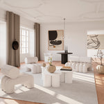 Characterized by sculptural steps and arches, each table creates depth and a play of shadows that nods to classical architecture with a contemporary edge. The round dining table is perfect for intimate dining settings.