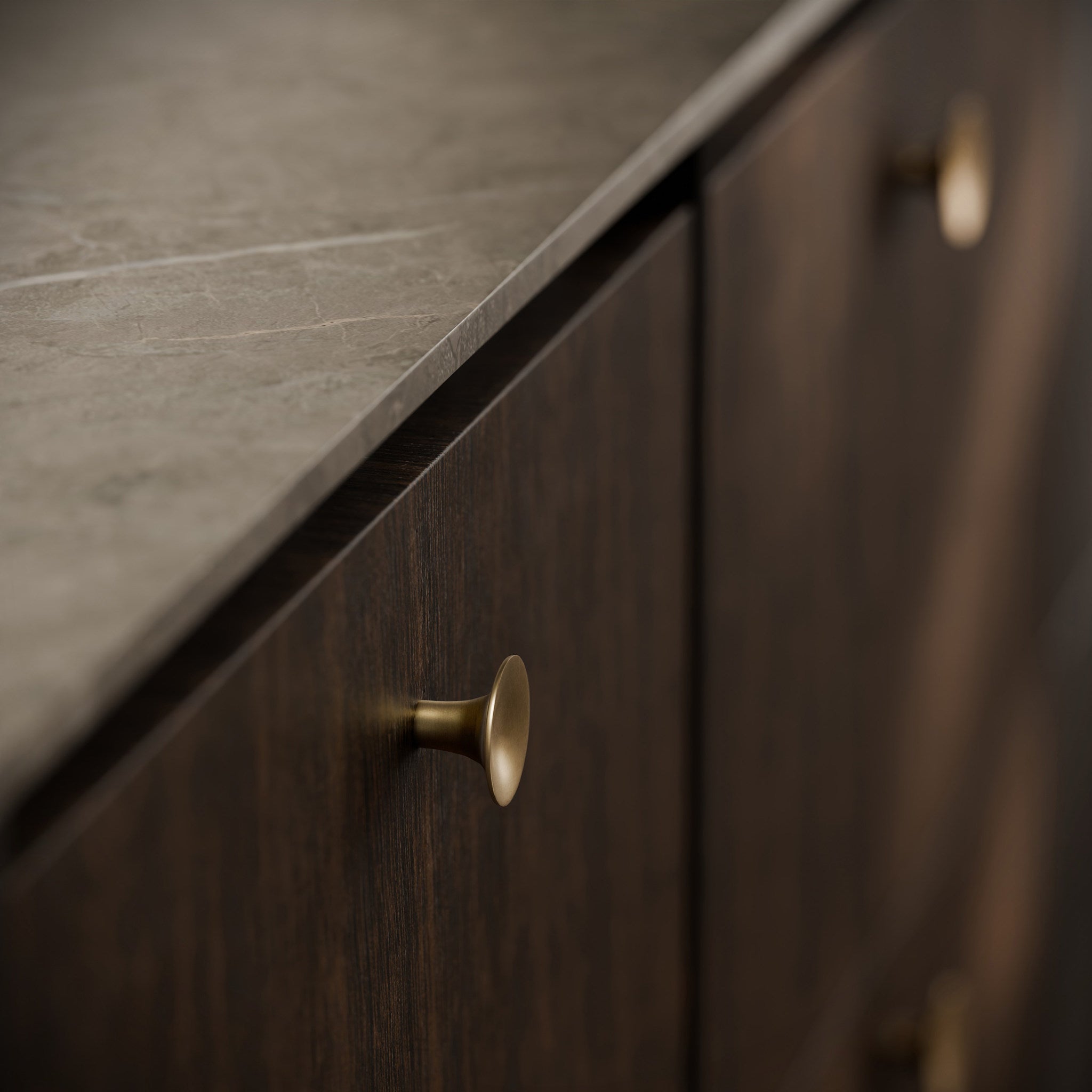 One recognizes various musical instruments when looking at the playful Hi-Hat knobs, from a classical cymbal to the bell of swinging brass instruments. The knobs are made from iron and comes in a plated brass, burned black, brushed steel or plated bronze colour, adding warmth and elegance to the wall. Each knob comes with two different screws for mounting directly in a wall or to mount on a kitchen or furniture front.